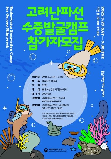 내고향뉴스 고광만 기자 | 국가유산청 국립해양유산연구소는 오는 9월 27일부터 30일까지 일반 국민들이 수중유산 조사를 직접 체험해볼 수 있는 '고려난파선 수중발굴 캠프'를 운영한다. 지금까지는 수중발굴 전문가들만 경험해 볼 수 있었던 신비롭고도 역사적인 바다가 이제는 국민에게 활짝 열리는 것이다.