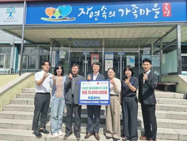 내고향뉴스 고광만 기자 | 곡성군은 지난 29일 한국철도공사(코레일) 전남본부가 최근 집중호우로 피해를 입은 군민들을 지원하기 위해 성금 1천만 원을 기탁했다고 전했다.