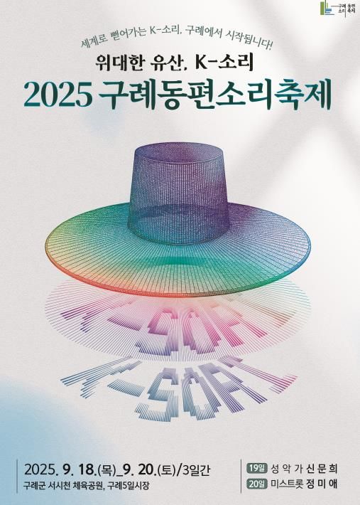 내고향뉴스 고광만 기자 | 전남 구례군은 오는 9월 18일부터 20일까지 3일간 서시천 체육공원과 구례5일시장 일원에서 ‘2025 구례동편소리축제’를 개최한다고 밝혔다.