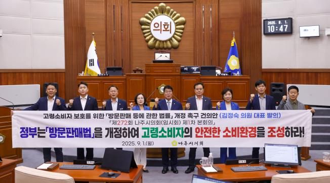 나주시의회는 이번 건의안을 통해 ▲'방문판매 등에 관한 법률'에 지방자치단체의 능동적인 현장 실사 및 지도·단속 권한을 명문화하고, ▲고령소비자 보호를 위한 상위 법령에 지자체의 소비 교육 및 피해 구제 활동에 대한 재정 지원 근거를 확충할 것을 촉구했다.