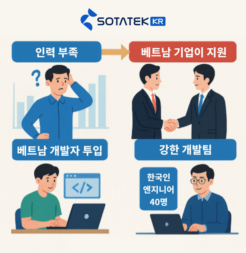 특히 소타텍 코리아는 한국인 엔지니어들을 지속적으로 교육하고 역량을 강화하는 한편, 베트남 오프쇼어 팀과의 연계를 더욱 강화하여 현지 프로젝트 실행 능력을 보강하고 있다.