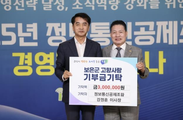 내고향뉴스 고광만 기자 | 강정훈 정보통신공제조합 이사장은 지난 1일 속리산포레스트 연수원동 비전홀에서 열린 ‘2025 정보통신공제조합 경영발전 세미나’에서 보은군에 고향사랑기부금 300만원을 기탁했다.