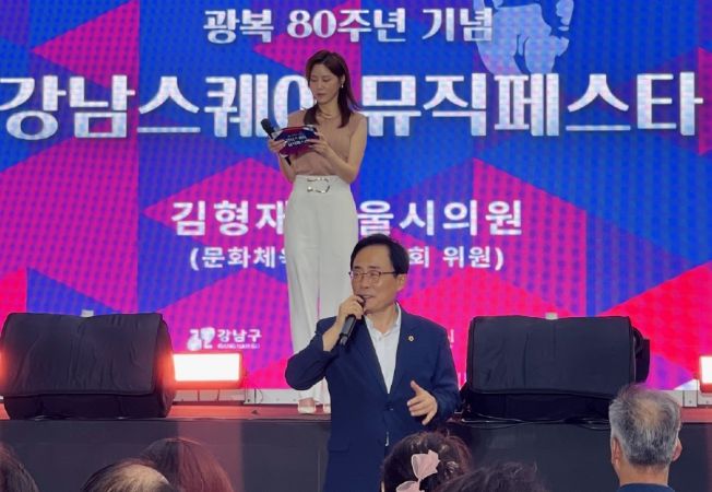 내고향뉴스 고광만 기자 | 서울특별시의회 김형재 의원(국민의힘, 강남2)은 8월 29일 강남스퀘어에서 열린 광복 80주년 기념 강남뮤직페스타에 참석해 축사를 전했다.