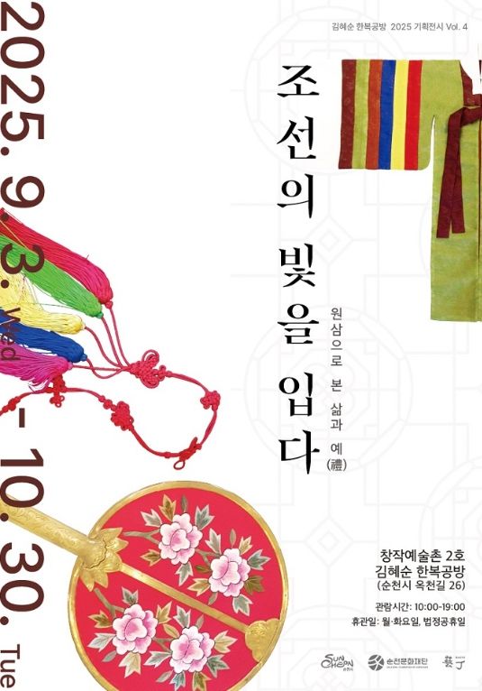 내고향뉴스 고광만 기자 | 순천문화재단이 운영하는 순천창작예술촌 2호 ‘김혜순 한복공방’에서 오는 3일부터 10월 30일까지 전통 원삼 기획전 「조선의 빛을 입다 – 원삼으로 본 삶과 예(禮)」를 개최한다.
