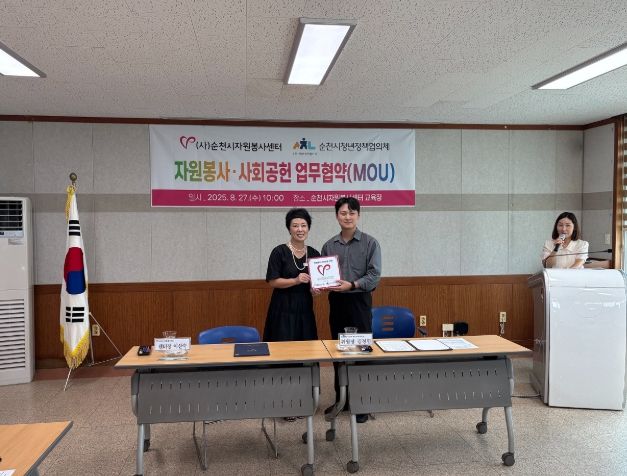 김경민 순천시청년정책협의체 위원장은 “이번 협약을 계기로 청년들이 주체적으로 지역 문제 해결에 나서겠다”며 “환경 정화활동, 재능 기부, 독거 어르신 돌봄, 청소년 멘토링 등 일상 속 다양한 봉사와 나눔 활동을 확산시켜 나가겠다”고 밝혔다.