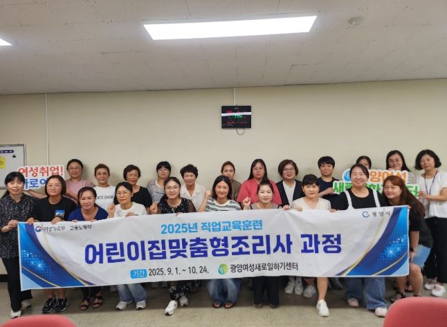 내고향뉴스 고광만 기자 | 광양여성새로일하기센터는 경력단절여성과 미취업여성의 재취업을 지원하고, 현장에서 즉시 활용 가능한 전문 인력 양성을 위해 지난 9월 1일 하반기 직업교육훈련 과정으로 어린이집맞춤형조리사와 실버복지전문가 과정을 개강했다고 밝혔다.