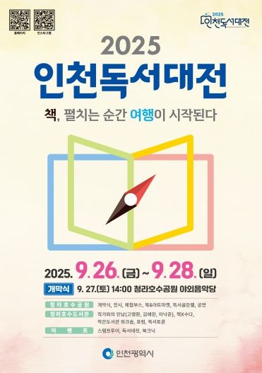 내고향뉴스 고광만 기자 | 인천광역시는 오는 9월 26일부터 28일까지 3일간 청라호수공원 야외음악당과 청라호수도서관에서 ‘2025 인천 독서대전’을 개최한다고 밝혔다.