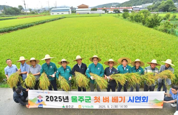 이번 행사는 울주군 농업인들의 땀과 노력의 결실을 확인하는 뜻깊은 자리로서 올해 기록적인 폭염과 가뭄 등 어려운 기상 여건을 이겨내고 자란 벼의 첫 수확을 축하하고, 한 해의 풍년 농사를 기원하는 의미로 마련됐다.