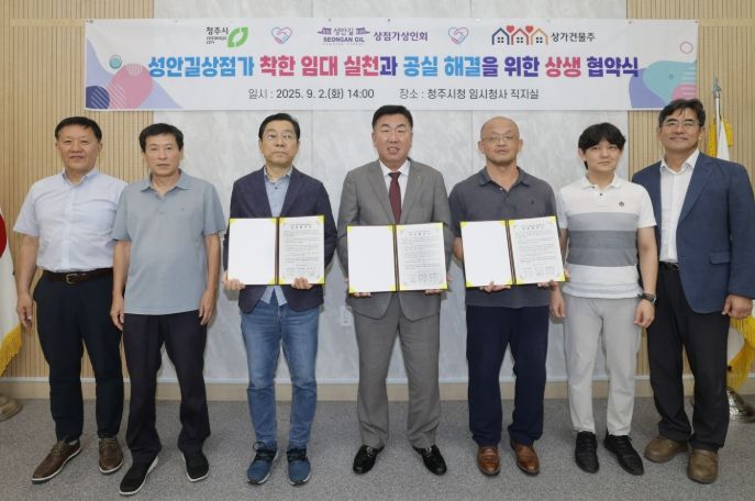 이날 임시청사 직지실에서 개최된 협약식에는 이범석 청주시장, 홍경표 상인회 회장, 성안길상점가 건물주 대표로 김석웅 씨가 참석했다.