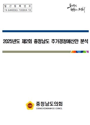 내고향뉴스 고광만 기자 | 충남도의회는 충남도 제2회 추가경정예산안 및 제1회 기금운용계획변경안 심의를 지원하기 위해 ‘2025년도 제2회 충청남도 추가경정예산안 분석보고서’를 발간했다.