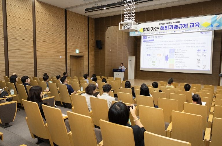 산업통상자원부 국가기술표준원과 공동으로 주최한 이번 교육은 광양만권 입주기업들이 해외 진출 과정에서 맞닥뜨리는 무역기술장벽 (TBT · Technical Barriers to Trade)에 대한 이해를 높이고, 최근 강화되는 글로벌 규제 동향에 능동적으로 대응할 수 있도록 지원하기 위해 마련됐다.