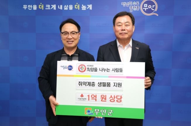 내고향뉴스 고광만 기자 | 무안군은 2일 취약계층 및 사회복지시설 지원을 위해 (사)희망을 나누는 사람들(회장 김정안)과 업무협약을 체결했다고 밝혔다.