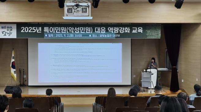 내고향뉴스 고광만 기자 | 담양군은 2일 담빛농업관 대강당에서 전 부서 직원을 대상으로 특이·악성민원 대응 역량강화 교육을 추진했다.