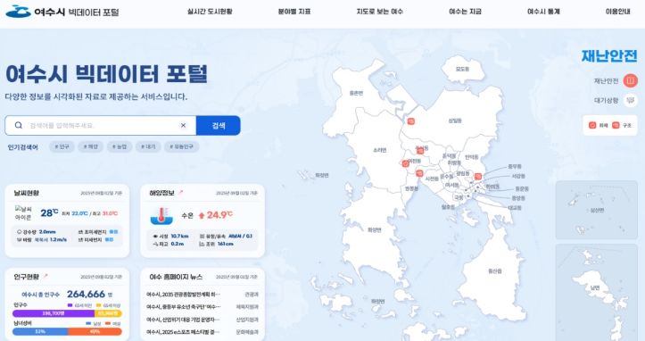 내고향뉴스 고광만 기자 | 여수시는 시민 편의성 향상과 과학적 행정 구현을 위해 구축한 '여수시 빅데이터 포털을 9월 3일부터 정식 개시한다.