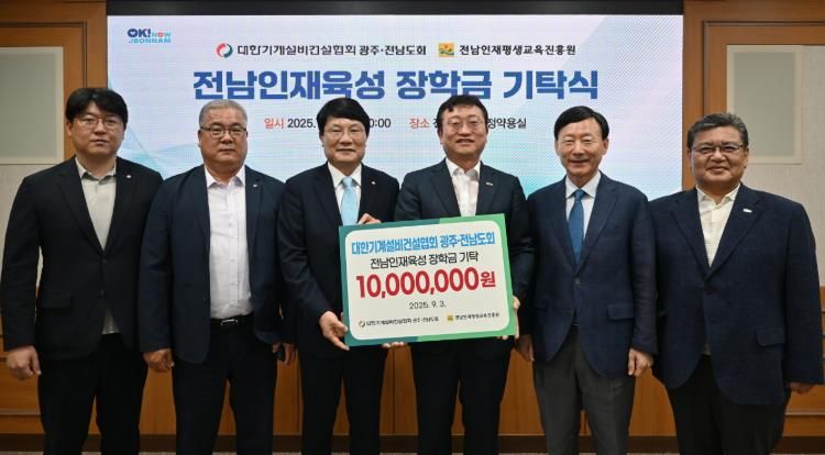 내고향뉴스 고광만 기자 | 전라남도는 3일 대한기계설비건설협회 광주·전남도회에서 (재)전남인재평생교육진흥원에 인재육성 장학금 1천만 원을 기탁했다고 밝혔다.