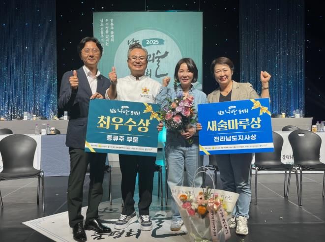 내고향뉴스 고광만 기자 | 곡성군은 지난 2일 광주MBC 공개홀에서 열린 ‘2025 남도 우리술 품평회’에서 농업회사법인 시향가의 ‘네오 40’이 새술마루상과 증류주 부문 최우수상과 새술마루상을 동시에 받으며 2관왕을 차지했다고 3일 전했다.