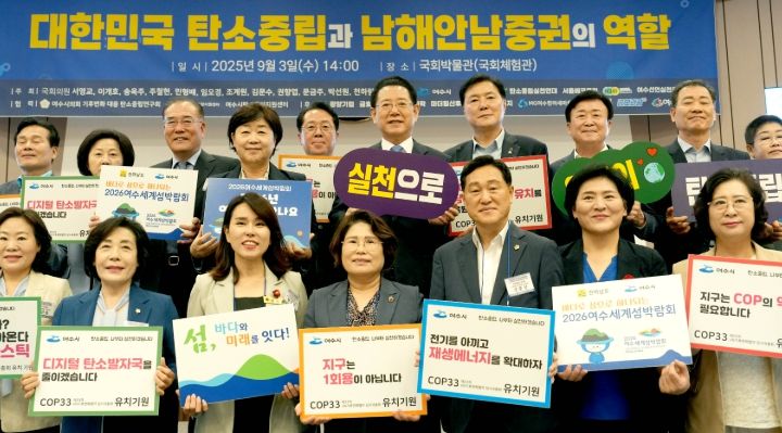 내고향뉴스 고광만 기자 | 전라남도는 3일 국회박물관에서 ‘대한민국 탄소중립과 남해안 남중권 역할’이라는 주제로 국회포럼이 열려 탄소중립과 유엔기후변화협약 당사국총회(COP33) 유치 의지를 다졌다고 밝혔다.