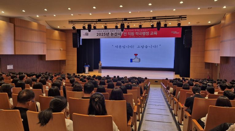 내고향뉴스 고광만 기자 | 논산시는 2일 논산아트센터 대공연장에서 전 직원을 대상으로 ‘2025년 전 직원 적극행정 교육’을 실시했다. 이번 교육은 적극행정에 대한 공직자들의 인식을 제고하고, 행정 혁신 문화를 확산하기 위해 마련됐다.