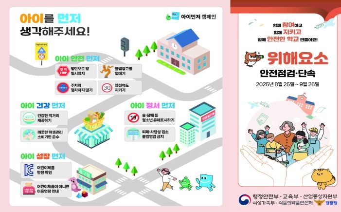 이번 점검은 개학기를 맞아 어린이가 안전하게 생활할 수 있는 환경을 조성하기 위해 관계부처 합동으로 진행 중인 ‘개학기 초등학교 주변 위해요소 집중점검’ (8.25.~9.26.)의 일환으로 실시됐다.