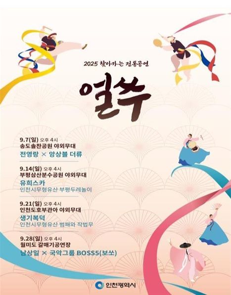 내고향뉴스 고광만 기자 | 인천광역시는 시민들이 일상에서 전통공연을 쉽게 접할 수 있도록 ‘2025년 찾아가는 전통공연 얼쑤’를 하반기에도 지속 추진한다고 밝혔다.