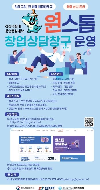 내고향뉴스 고광만 기자 | 경상국립대학교 창업중심대학사업단(단장 최병근)은 최근 사업단 누리집의 ‘원스톱 창업상담창구’를 대폭 개편하고, 지역 창업기업과 예비창업자들이 쉽게 상담 서비스를 이용하도록 온라인 접근성을 대폭 강화했다고 밝혔다.