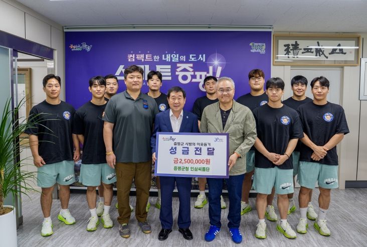 내고향뉴스 고광만 기자 | 충북 증평군은 증평군청인삼씨름단(감독 연승철)이 4일 군청을 방문해 지역 내 소외계층을 위한 이웃돕기 성금을 전달했다고 밝혔다.