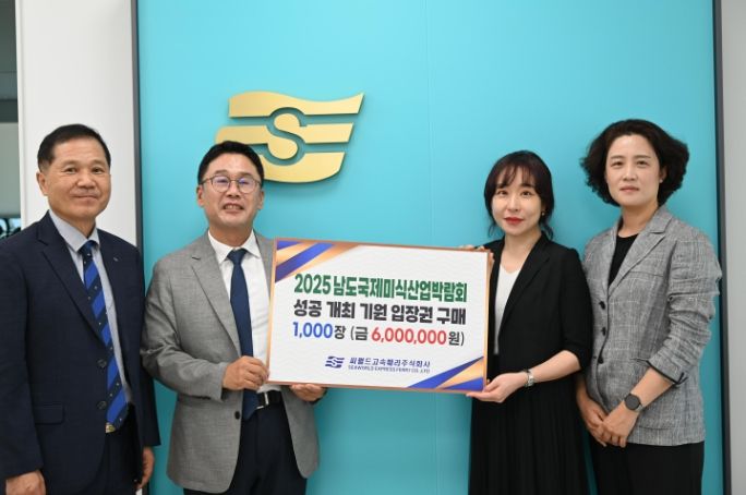내고향뉴스 고광만 기자 | 목포시는 씨월드고속훼리(주)(대표 이종훈)가 오는 10월 목포에서 열리는 ‘2025 남도국제미식산업박람회’ 입장권 1천 장을 구매했다고 밝혔다.