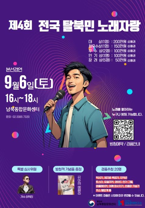 내고향뉴스 허민 기자 | 통일부 남북통합문화센터(서울시 강서구 소재)는 9월 6일 오후 4시, '전국 탈북민 노래자랑'을 개최한다.