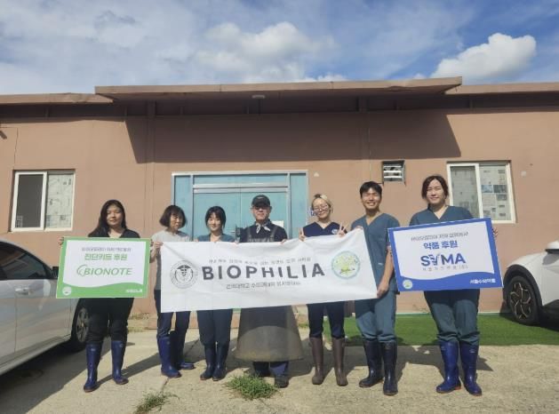 건국대학교 ‘바이오필리아’는 ‘생명을 사랑하는 사람들’이라는 뜻을 가진 수의학 봉사동아리로, 국내 보호소 봉사뿐 아니라 해외 수의 의료 봉사와 유기동물 진료 캠페인 등 다양한 활동을 이어가고 있다.