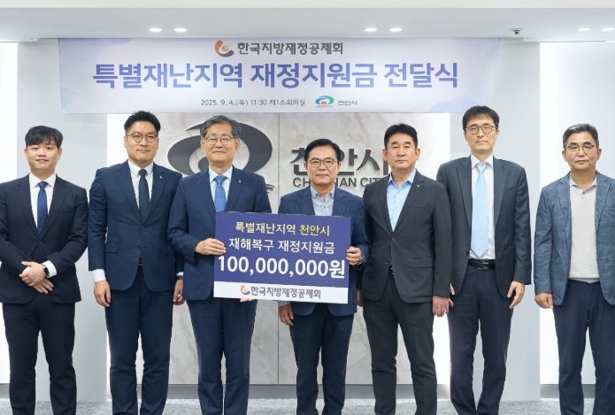 내고향뉴스 고광만 기자 | 천안시는 한국지방재정공제회로부터 특별재난지역 재해복구 재정 지원금 1억 원을 전달받았다고 4일 밝혔다.