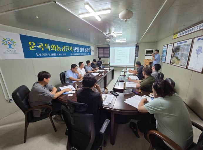 내고향뉴스 고광만 기자 | 곡성군은 지난 8월 29일, 곡성운곡특화농공단지의 성공적인 분양과 지역 내 식품 관련 기업 유치를 위해 운곡특화농공단지 현장 회의실에서 간담회를 개최했다.