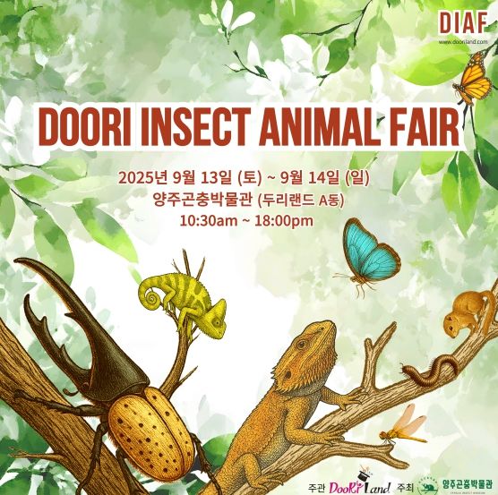 내고향뉴스 고광만 기자 | 양주시는 오는 13일부터 14일까지 지역 내 양주곤충박물관 2층에서 ‘두리랜드’와 ‘양주곤충박물관’이 공동 주최하는 ‘두리 인섹트 애니멀 페어 2025’가 개최된다고 밝혔다.
