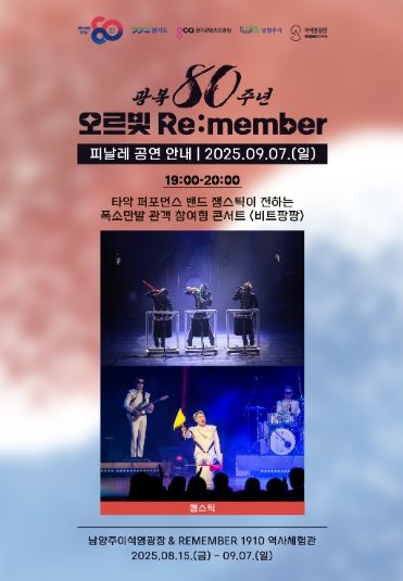전시는 9월 7일 일요일까지 진행되며, 같은 날 오후 7시에는 타악 퍼포먼스팀 ‘잼스틱’이 무대에 올라 ‘비트 팡팡 콘서트’를 펼치며 피날레 공연을 선보인다. 이번 무대로 경기도와 함께 약 3주간 이어진 ‘오르빛 리멤버’ 전시의 대미를 화려하게 장식할 예정이다.