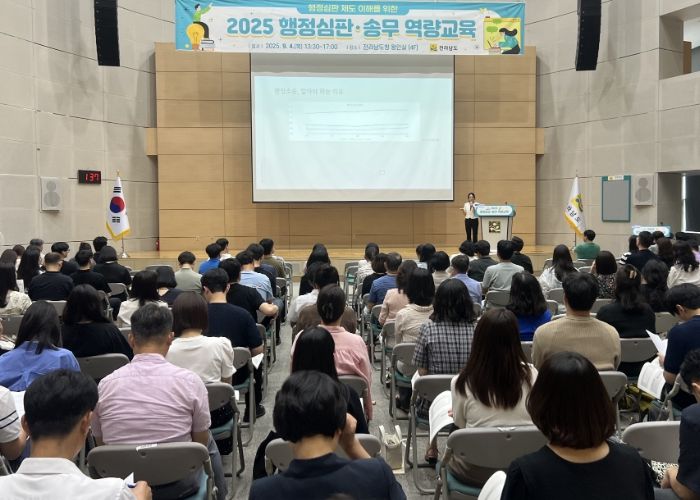 내고향뉴스 고광만 기자 | 전라남도는 4일 도청 왕인실에서 도, 시군 행정처분 담당 공무원 200여 명을 대상으로 2025 행정심판·송무 역량교육을 했다.