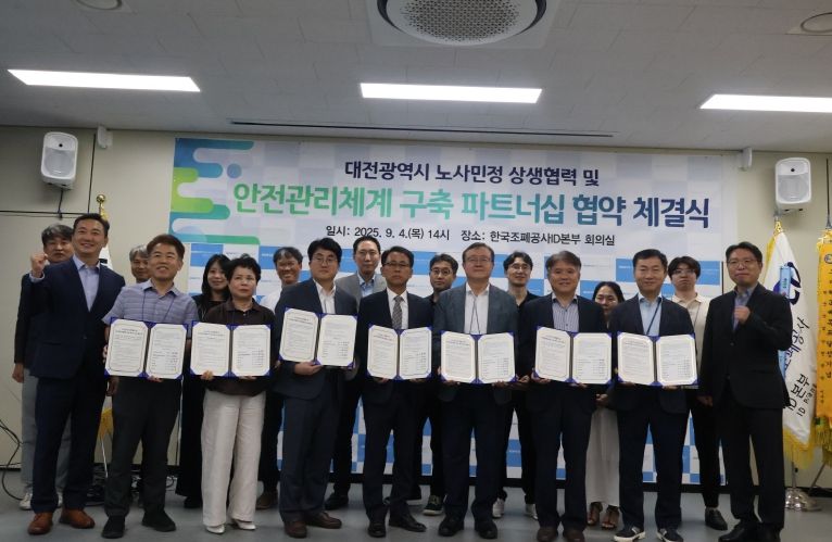 권경민 대전시 경제국장은 “이번 협약은 민간과 공공이 함께 지역 산업현장의 안전 수준을 높이는 모범적 사례”라며 “정부의 중대재해 예방 정책 기조와 연계해 자율적 안전관리와 노사 협력을 통한 상생적 안전 문화 확산을 적극 뒷받침하겠다”라고 강조했다.