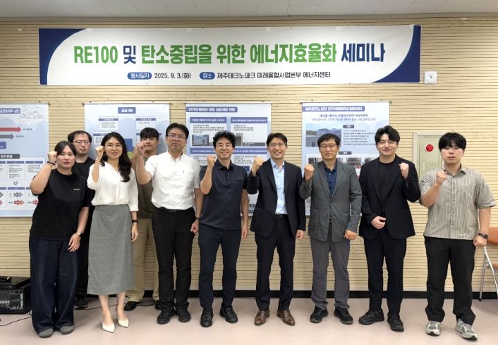 내고향뉴스 고광만 기자 | 제주테크노파크(원장 지영흔, 제주TP) 미래융합사업본부는 3일 지속가능한 에너지 경쟁력 확보를 위한 전략 발굴을 위해 국내 에너지 선도기관들과 함께 ‘RE100 및 탄소중립을 위한 에너지 효율화’ 세미나를 개최했다.