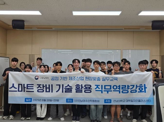 내고향뉴스 고광만 기자 | 전남대학교 대학일자리플러스센터는 8월 28일부터 29일까지 이틀간 전남여수산학융합원에서 재학생을 대상으로 거점형 특화프로그램 ‘스마트 장비 기술 활용 직무교육’을 성황리에 마쳤다고 밝혔다.