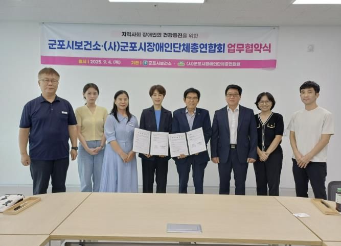 내고향뉴스 관리자 기자 | 군포시보건소는 지난 4일 (사)군포시장애인단체총연합회와 함께 지역사회 장애인의 건강증진과 삶의 질 향상을 위한 상호 협력을 약속하는 업무협약을 체결했다.
