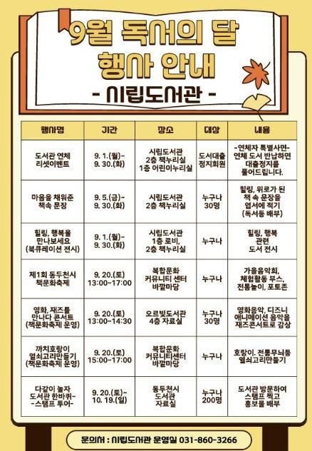 시립도서관 관계자는 “9월 독서의 달을 맞아 준비한 프로그램들이 시민들에게 책의 즐거움과 문화적 풍요로움을 전하길 기대한다”라며 “많은 시민들의 관심과 참여를 바란다”라고 전했다.
