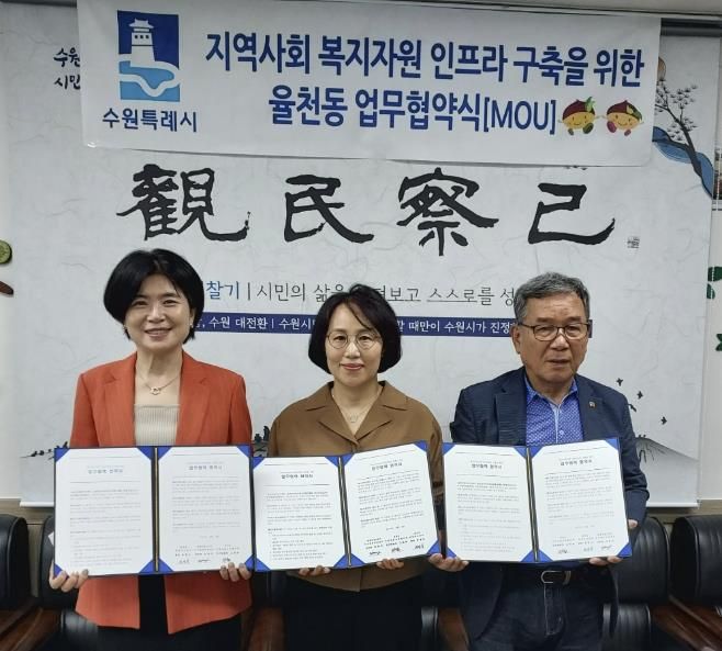 내고향뉴스 관리자 기자 | 수원시 장안구 율천동 지역사회보장협의체는 지역주민의 복지향상과 복지사각지대해소를 위해 관내 위치한 밤꽃마을2단지 주거행복지원센터와 업무협약(MOU)을 체결했다고 밝혔다.