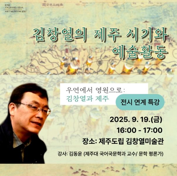 이번 강연은 9일부터 시작되는 전시 '우연에서 영원으로: 김창열과 제주'와 연계해 기획됐으며, 김창열 화백이 1951년부터 1953년까지 제주에서 보낸 시간과 예술 활동을 심도 있게 조명한다.