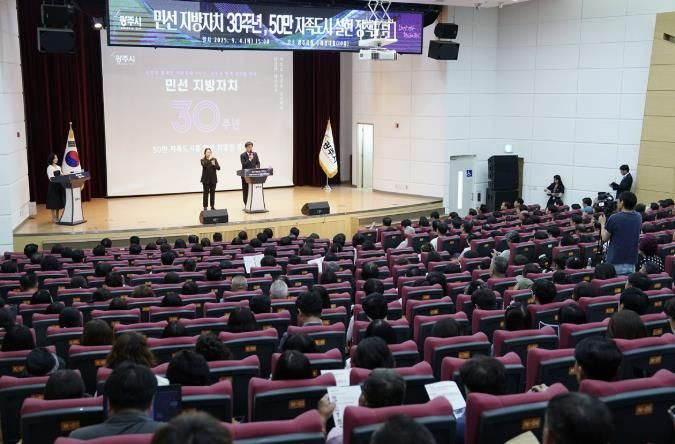 내고향뉴스 채필재 기자 | 광주시는 지난 4일 시청 10층 수어장대홀에서 450여 명의 시민과 전문가가 참석한 가운데, '민선 지방자치 30주년 기념, 50만 자족도시 실현 정책포럼'을 성황리에 개최했다.