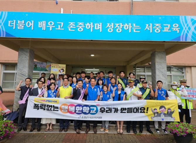 이번 지역합동 학교폭력 예방 캠페인은 서산교육지원청 주관으로 9월 4일 아침 서산중학교에서 진행됐으며 서산경찰서, 법무부 청소년범죄예방위원회 서산지구, 서산시 녹색어머니회, 서산중학교 교직원들이 동참했다.