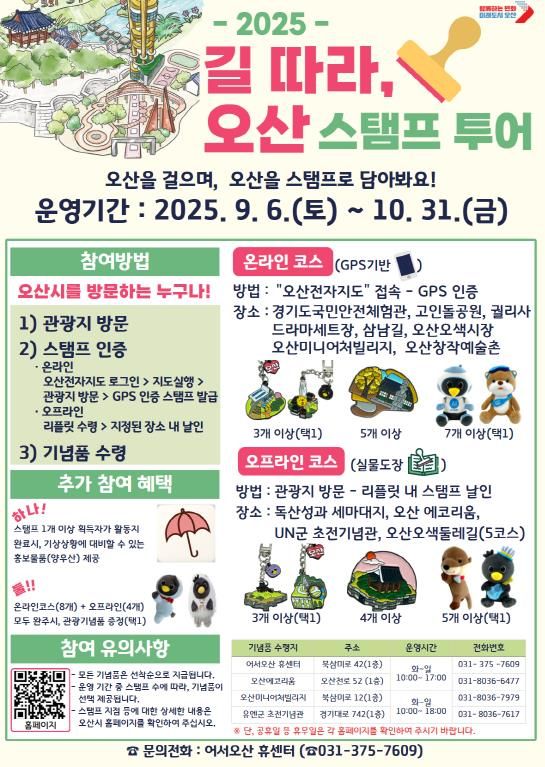 특히 올해는 시민들의 적극적인 추천을 반영해 경기도 국민안전체험관과 오산 창작예술촌 등이 신규 투어 장소로 추가됐다. 또한 2025년에는 기존 GPS 및 온라인 웹 지도 기반 코스뿐만 아니라, 참여자가 직접 현장을 방문해 도장을 찍는 오프라인 코스도 함께 운영된다.