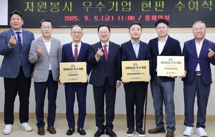 내고향뉴스 고광만 기자 | 대전시는 5일 시청 중회의실에서 자원봉사활동이 우수한 기업 3곳에 ‘2025년도 자원봉사 우수기업’ 현판을 수여했다.