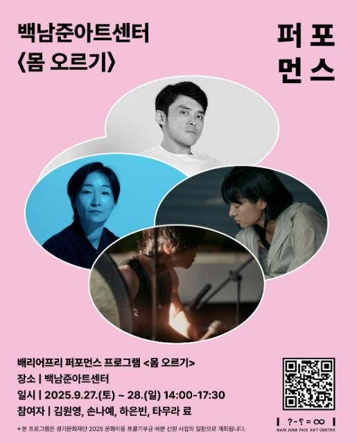 ‘몸 오르기’는 참가자 각자가 지닌 몸의 움직임을 탐구하고 이를 짧은 즉흥적 퍼포먼스로 확장하는 참여형 프로그램이다. 관람객은 백남준아트센터의 공간을 활용하여 단순한 감상자를 넘어 몸을 매개로 작품의 일부가 되는 경험을 할 수 있다. 아울러 이번 프로그램은 백남준의 예술을 매개로 장애인과 비장애인이 상호 돌봄의 가치를 이해하고 실천하는 ‘경계 없는 열린 미술관’을 지향하는 프로그램이라는 점에 의의가 있다.