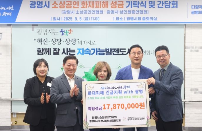 내고향뉴스 관리자 기자 | 광명시 소상공인들이 지난 7월 발생한 소하동 아파트 화재로 피해를 입은 주민들을 위해 모은 성금 1천 800여만 원을 기탁했다.