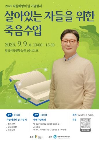 내고향뉴스 관리자 기자 | 광명시 자살예방센터는 오는 9일 광명시평생학습원에서 ‘2025년 자살예방의 날’을 맞아 ‘살아있는 자들을 위한 죽음수업’ 특강을 연다.