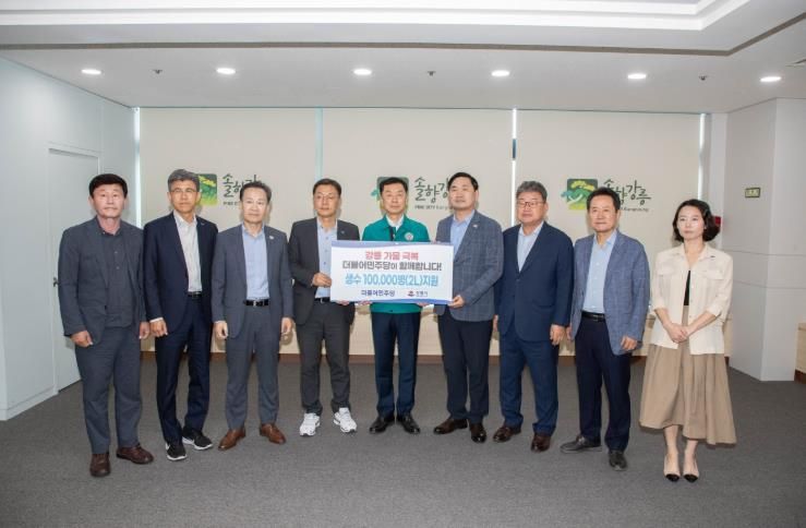 생수 후원에 참여하신 분들은 ▲국민연금공단, (재)국민연금나눔재단 생수(2L) 12,000병 ▲더불어민주당 생수(2L) 100,000병 ▲한국폴리텍대학 전국교수노동조합 생수(2L) 2,400병 ▲이정임님 생수(500ml) 20,000병 ▲한국공인중개사협회 회원 일동 생수(2L) 6,000병이다.