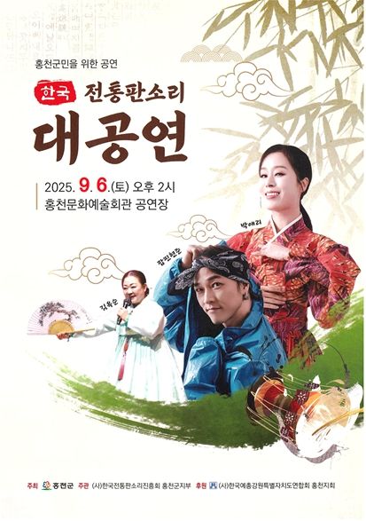 홍천군은 오는 6일 오후 2시 홍천문화예술회관 공연장에서 홍천군민을 위한 한국 전통 판소리 대공연을 연다.